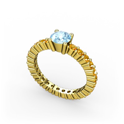 Akuamarin ve sitrin 14 ayar altın yüzük