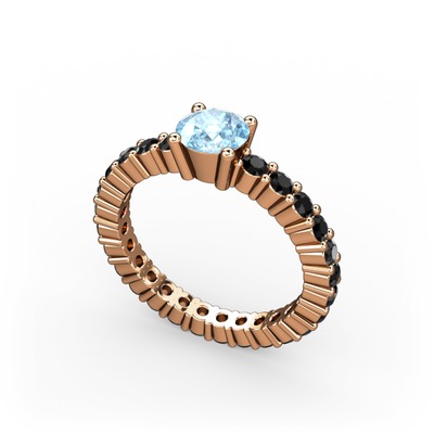 Akuamarin ve siyah zirkon 18 ayar rose altın yüzük