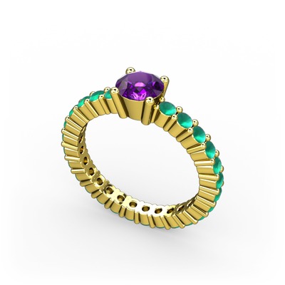 Ametist ve kök zümrüt 18 ayar altın yüzük