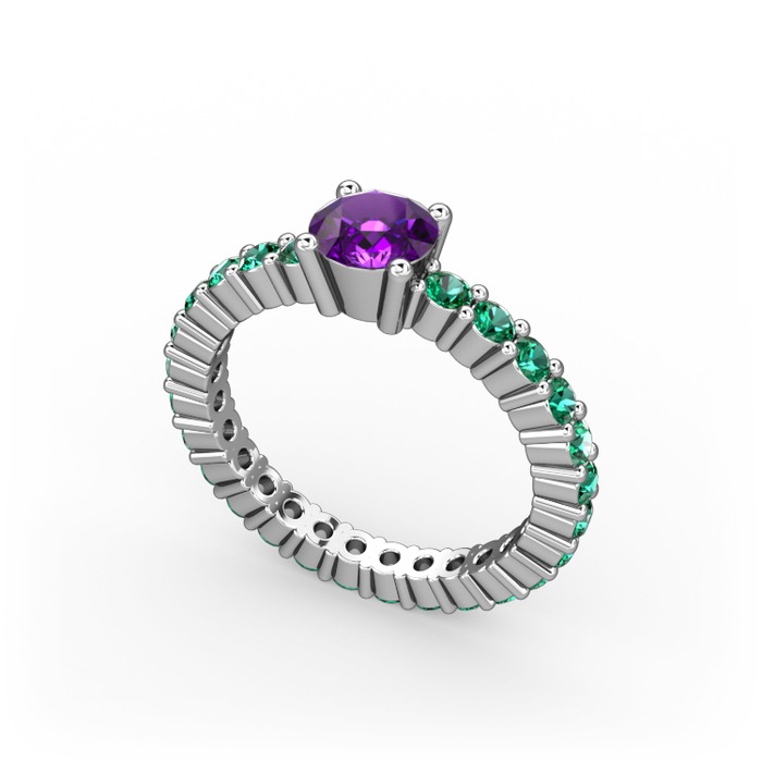 Ametist ve yeşil kuvars 14 ayar beyaz altın yüzük
