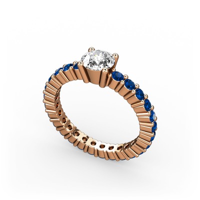 Beyaz zirkon ve lab safir 8 ayar rose altın yüzük