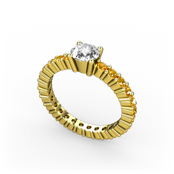 Beyaz zirkon ve sitrin 925 ayar altın kaplama gümüş yüzük
