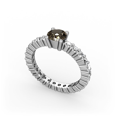 Dumanlı kuvars ve beyaz zirkon 925 ayar gümüş yüzük