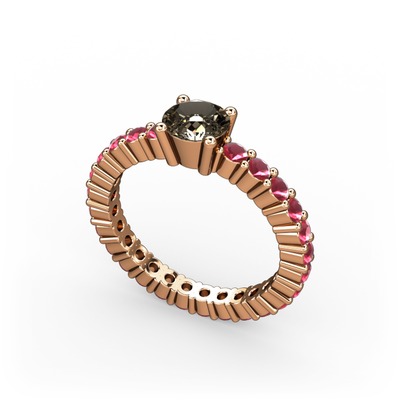 Dumanlı kuvars ve kök yakut 8 ayar rose altın yüzük