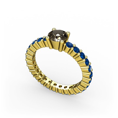 Dumanlı kuvars ve lab safir 8 ayar altın yüzük