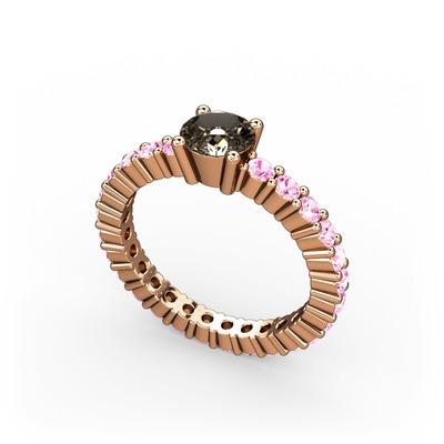 Dumanlı kuvars ve pembe kuvars 8 ayar rose altın yüzük