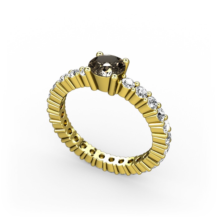 Dumanlı kuvars ve pırlanta 18 ayar altın yüzük (0.52 karat)