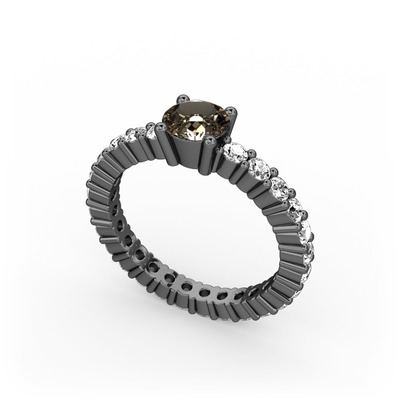 Dumanlı kuvars ve pırlanta 925 ayar siyah rodyum kaplama gümüş yüzük (0.52 karat)