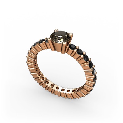 Dumanlı kuvars ve siyah zirkon 18 ayar rose altın yüzük
