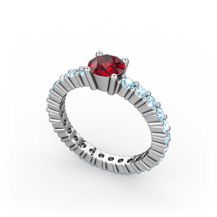 Garnet ve akuamarin 925 ayar gümüş yüzük