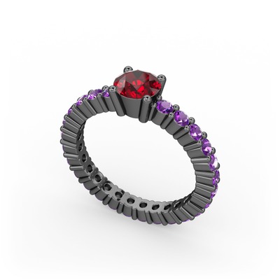 Garnet ve ametist 925 ayar siyah rodyum kaplama gümüş yüzük