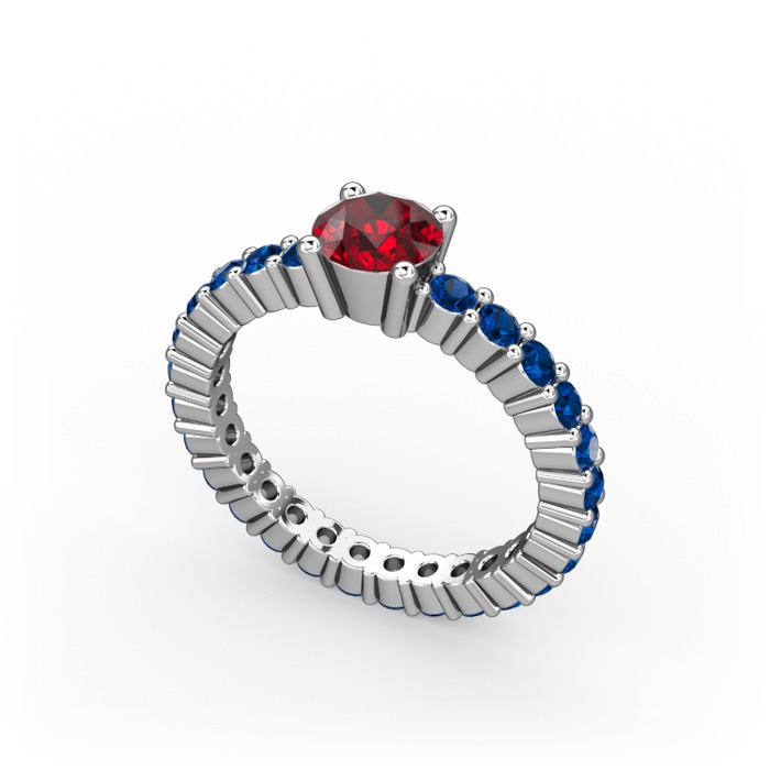 Garnet ve lab safir 14 ayar beyaz altın yüzük