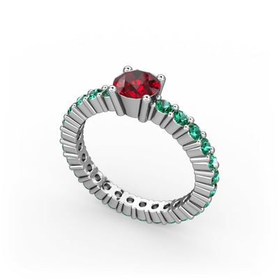 Garnet ve yeşil kuvars 14 ayar beyaz altın yüzük