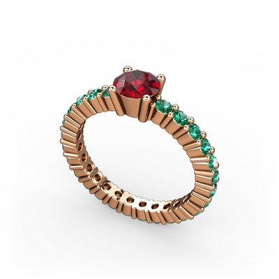 Garnet ve yeşil kuvars 14 ayar rose altın yüzük