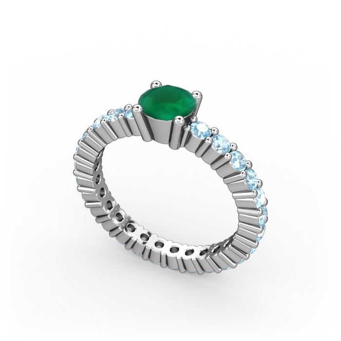 Kök zümrüt ve akuamarin 14 ayar beyaz altın yüzük
