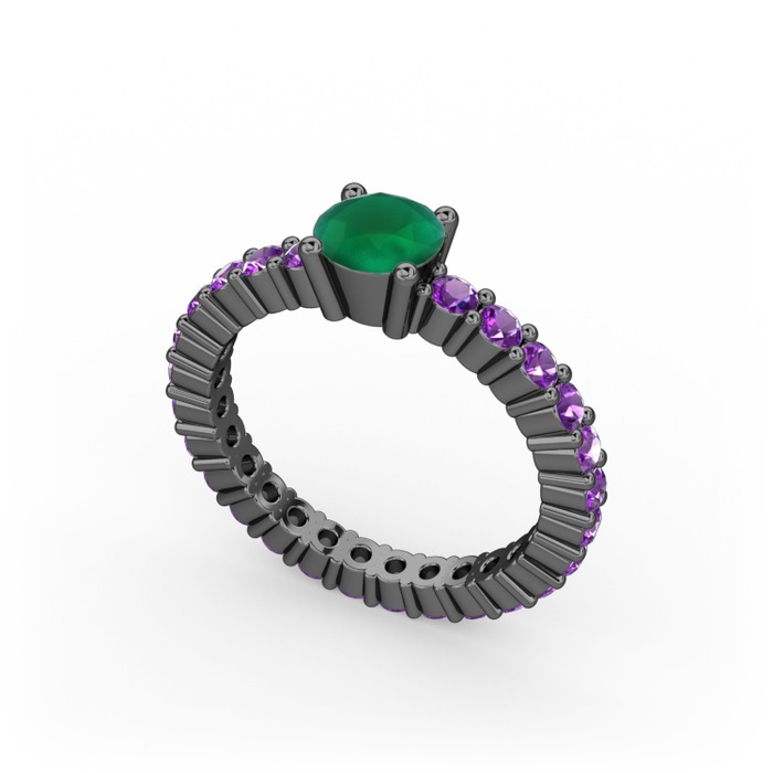 Kök zümrüt ve ametist 925 ayar siyah rodyum kaplama gümüş yüzük