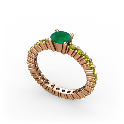 Kök zümrüt ve peridot 14 ayar rose altın yüzük