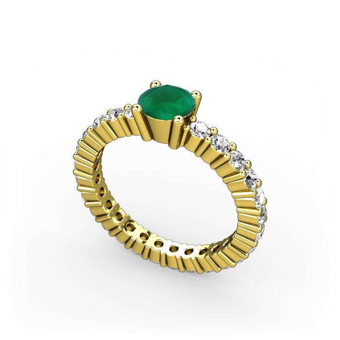 Kök zümrüt ve pırlanta 925 ayar altın kaplama gümüş yüzük (0.52 karat)