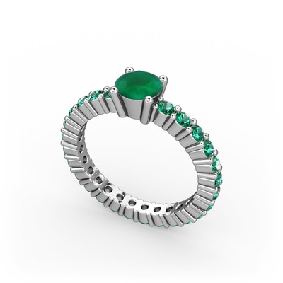 Kök zümrüt ve yeşil kuvars 14 ayar beyaz altın yüzük