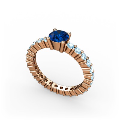 Lab safir ve akuamarin 14 ayar rose altın yüzük