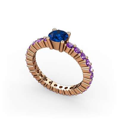 Lab safir ve ametist 14 ayar rose altın yüzük