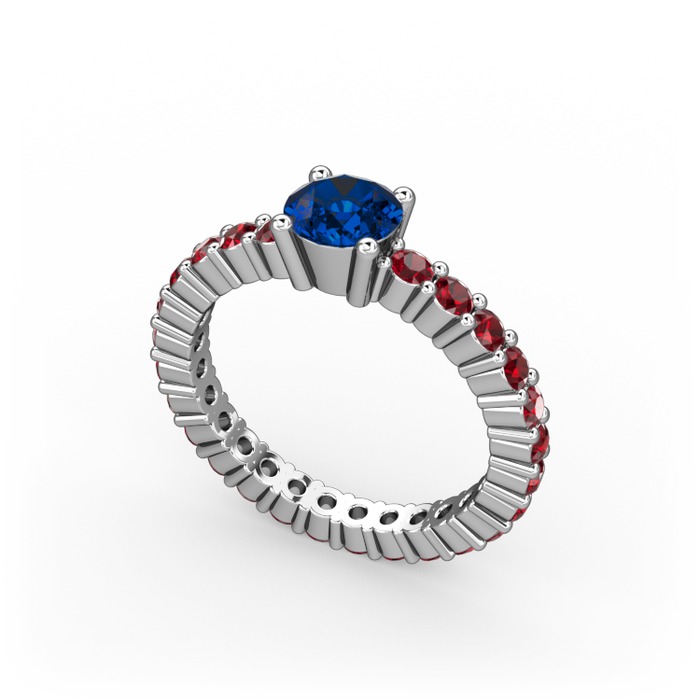 Lab safir ve garnet 14 ayar beyaz altın yüzük