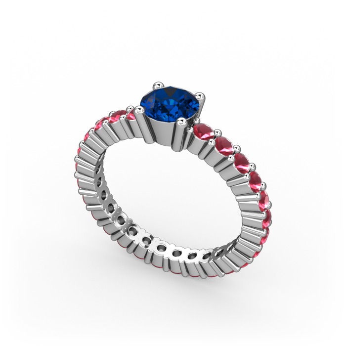 Lab safir ve kök yakut 18 ayar beyaz altın yüzük