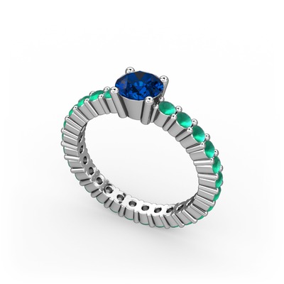 Lab safir ve kök zümrüt 8 ayar beyaz altın yüzük