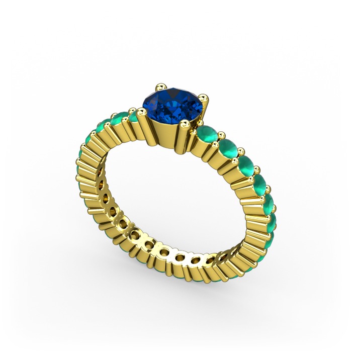 Lab safir ve kök zümrüt 925 ayar altın kaplama gümüş yüzük