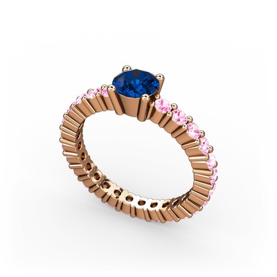 Lab safir ve pembe kuvars 8 ayar rose altın yüzük