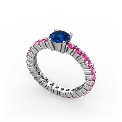 Lab safir ve rodolit garnet 14 ayar beyaz altın yüzük