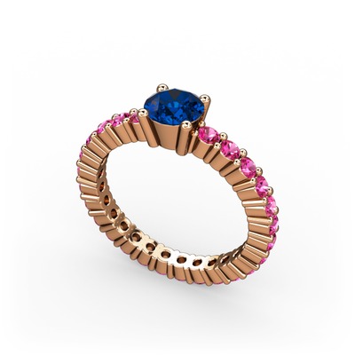Lab safir ve rodolit garnet 14 ayar rose altın yüzük