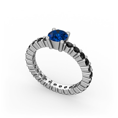Lab safir ve siyah zirkon 14 ayar beyaz altın yüzük