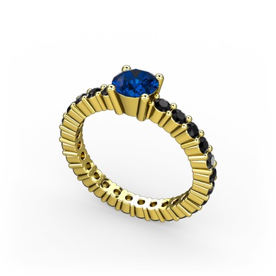 Lab safir ve siyah zirkon 925 ayar altın kaplama gümüş yüzük