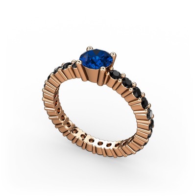 Lab safir ve siyah zirkon 925 ayar rose altın kaplama gümüş yüzük