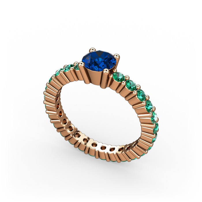 Lab safir ve yeşil kuvars 14 ayar rose altın yüzük