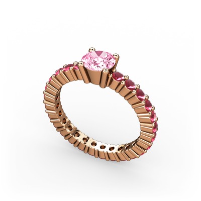 Pembe kuvars ve kök yakut 14 ayar rose altın yüzük