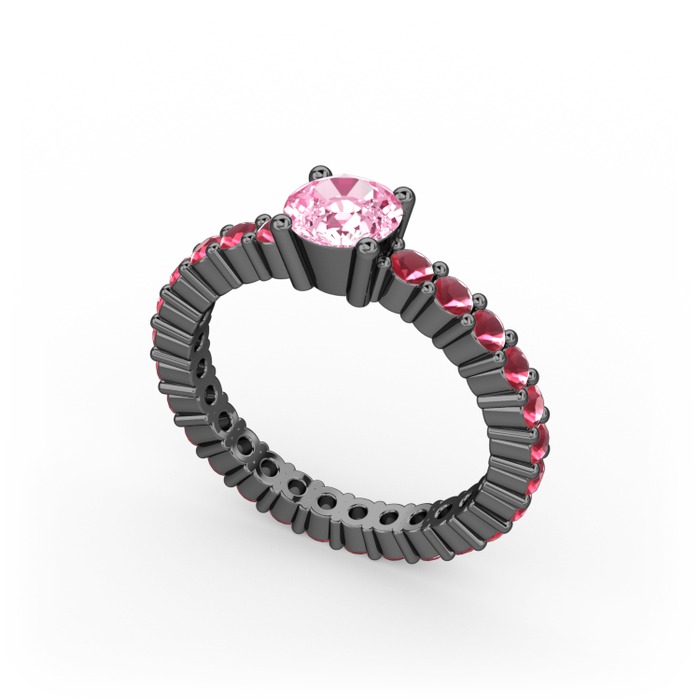 Pembe kuvars ve kök yakut 925 ayar siyah rodyum kaplama gümüş yüzük