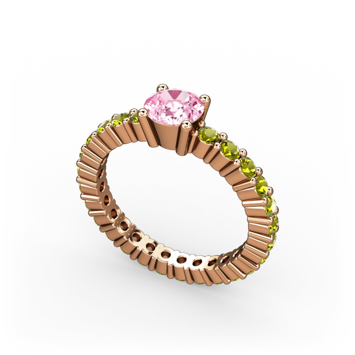 Pembe kuvars ve peridot 14 ayar rose altın yüzük