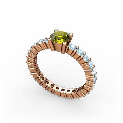 Peridot ve akuamarin 14 ayar rose altın yüzük