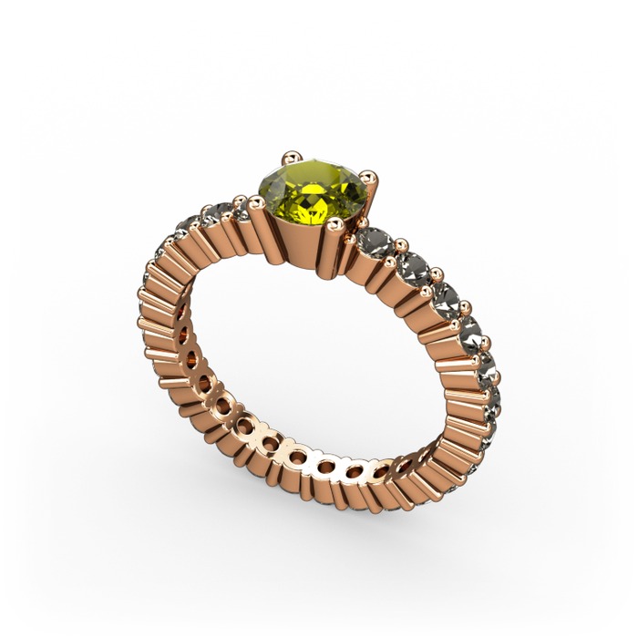 Peridot ve dumanlı kuvars 8 ayar rose altın yüzük