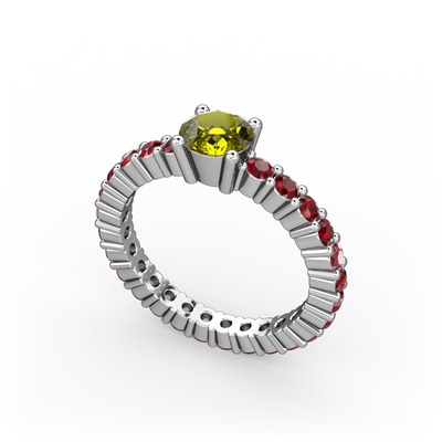 Peridot ve garnet 8 ayar beyaz altın yüzük
