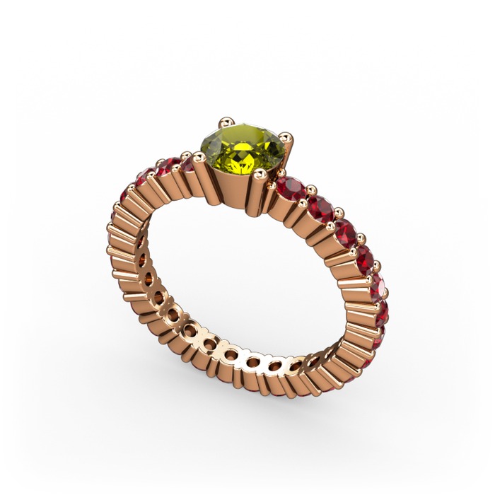 Peridot ve garnet 8 ayar rose altın yüzük