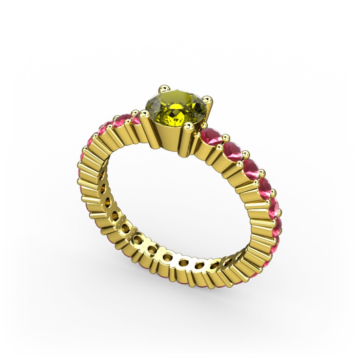 Peridot ve kök yakut 925 ayar altın kaplama gümüş yüzük