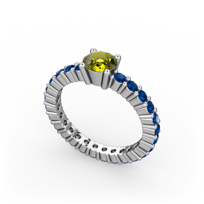 Peridot ve lab safir 14 ayar beyaz altın yüzük
