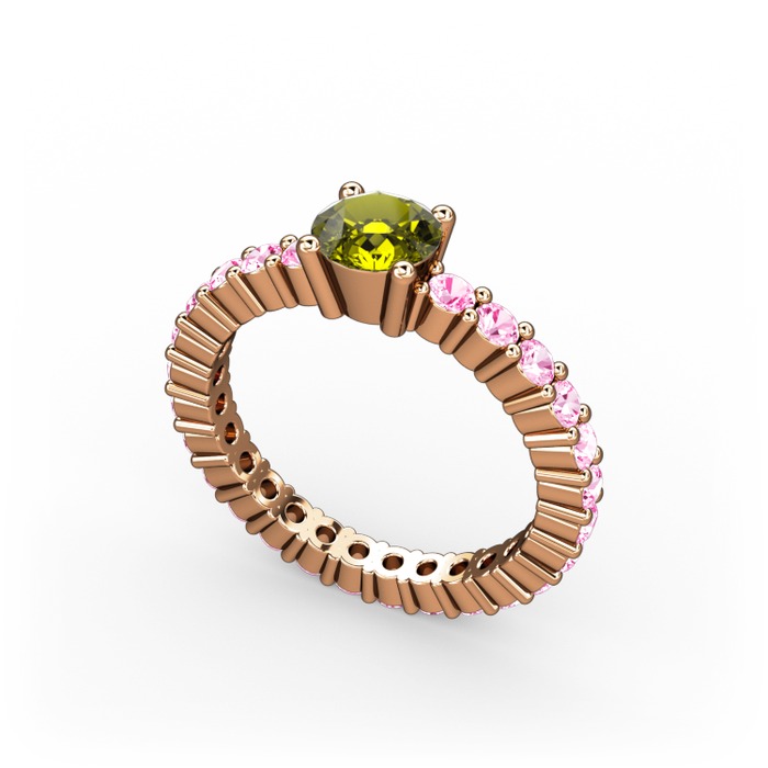 Peridot ve pembe kuvars 18 ayar rose altın yüzük