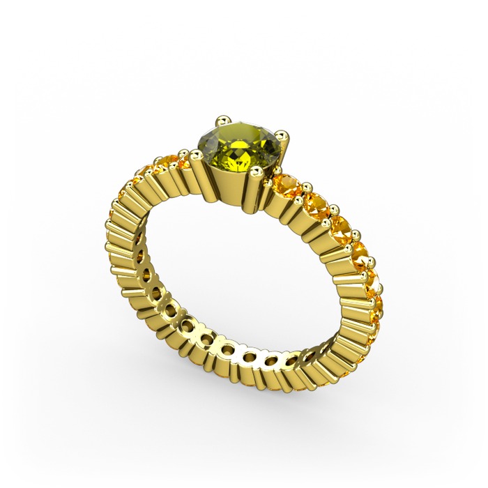 Peridot ve sitrin 925 ayar altın kaplama gümüş yüzük
