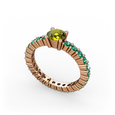 Peridot ve yeşil kuvars 14 ayar rose altın yüzük