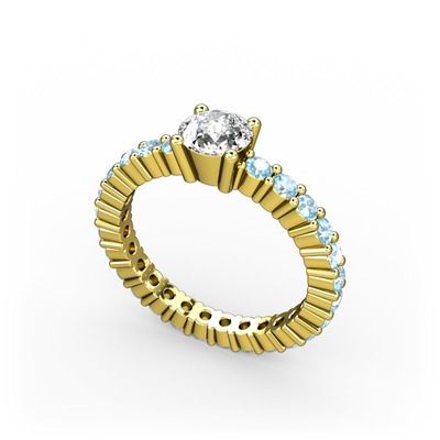 Pırlanta ve akuamarin 14 ayar altın yüzük (0.5 karat)