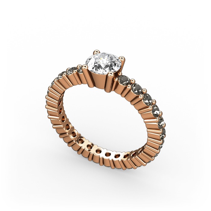 Pırlanta ve dumanlı kuvars 14 ayar rose altın yüzük (0.5 karat)